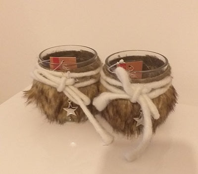 Glass Tealight Holder- Brown Fur 8cm - Pair